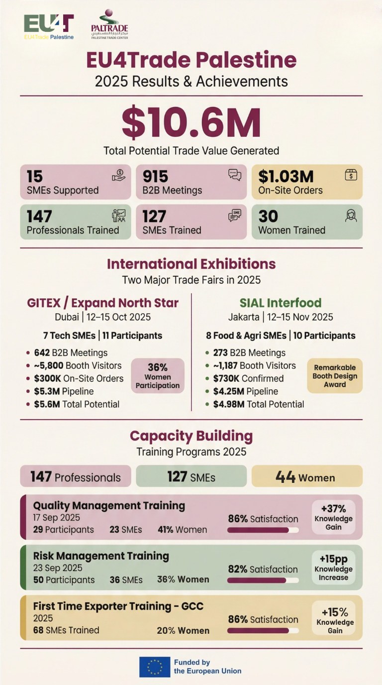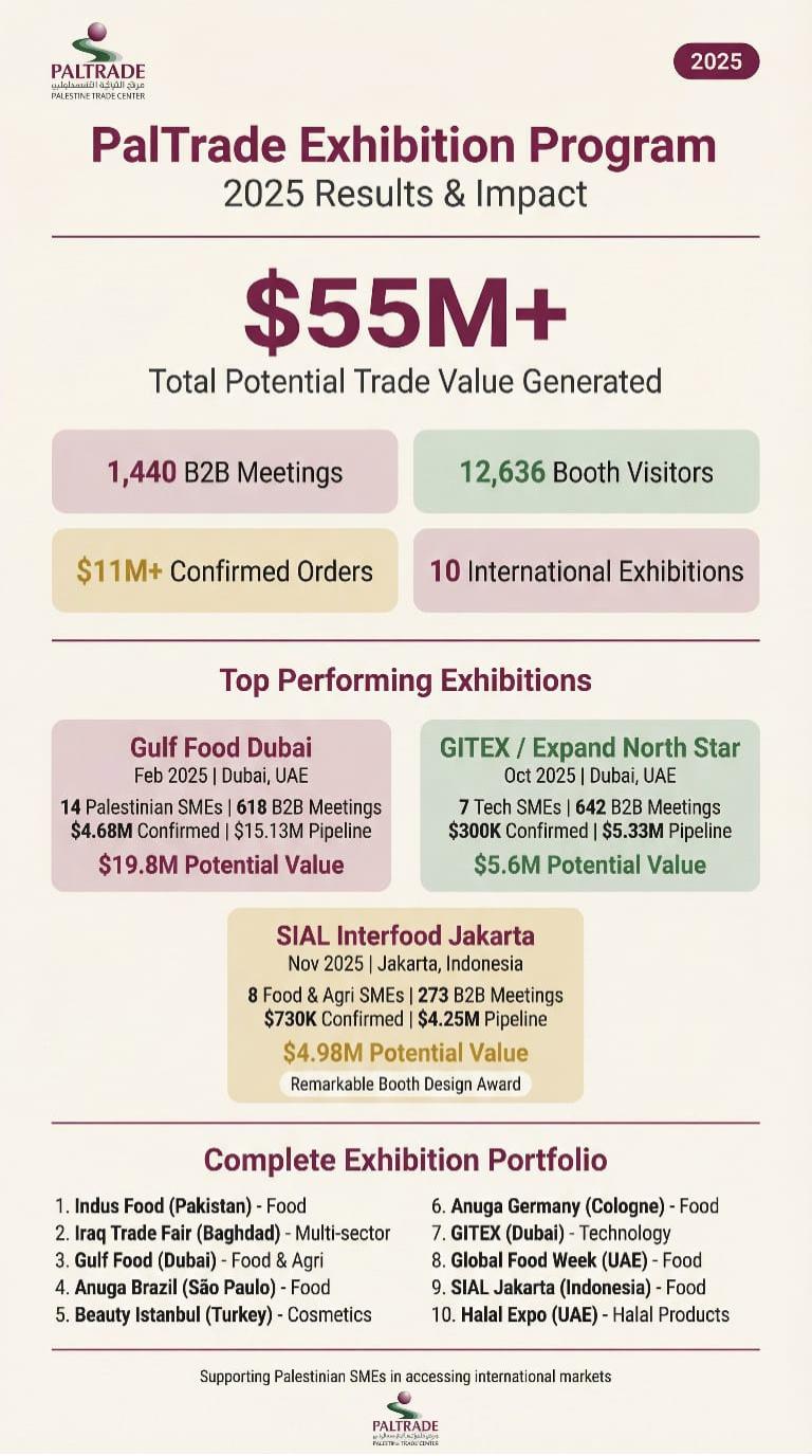 These results demonstrate disciplined execution, stronger international positioning, and a clearer pipeline for Palestinian exporters moving into 2026.